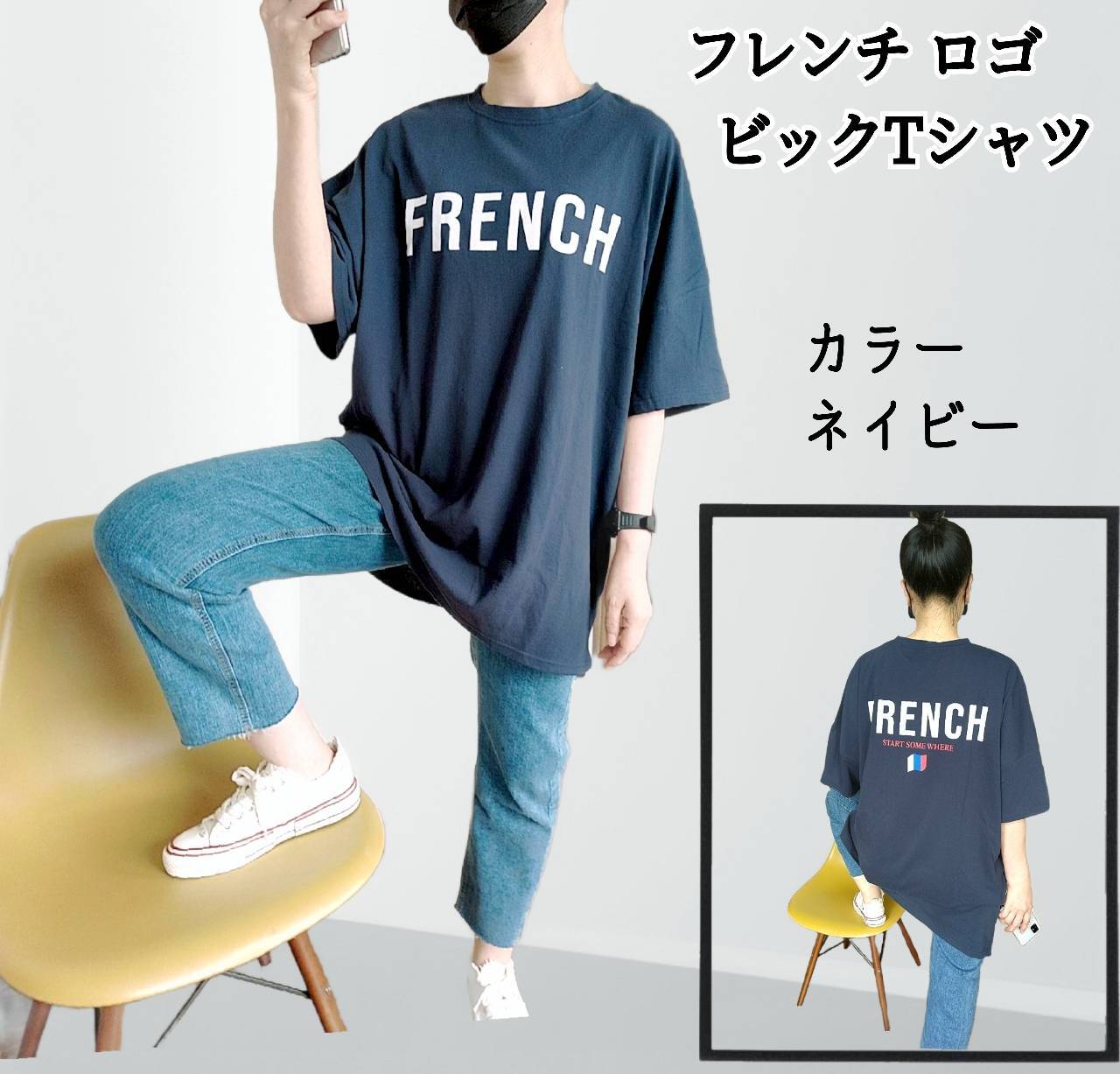 フレンチロゴオーバーサイズTシャツ ビッグサイズ ビッグシルエット レディースファッション 韓国ファッション 直輸入 x-05
