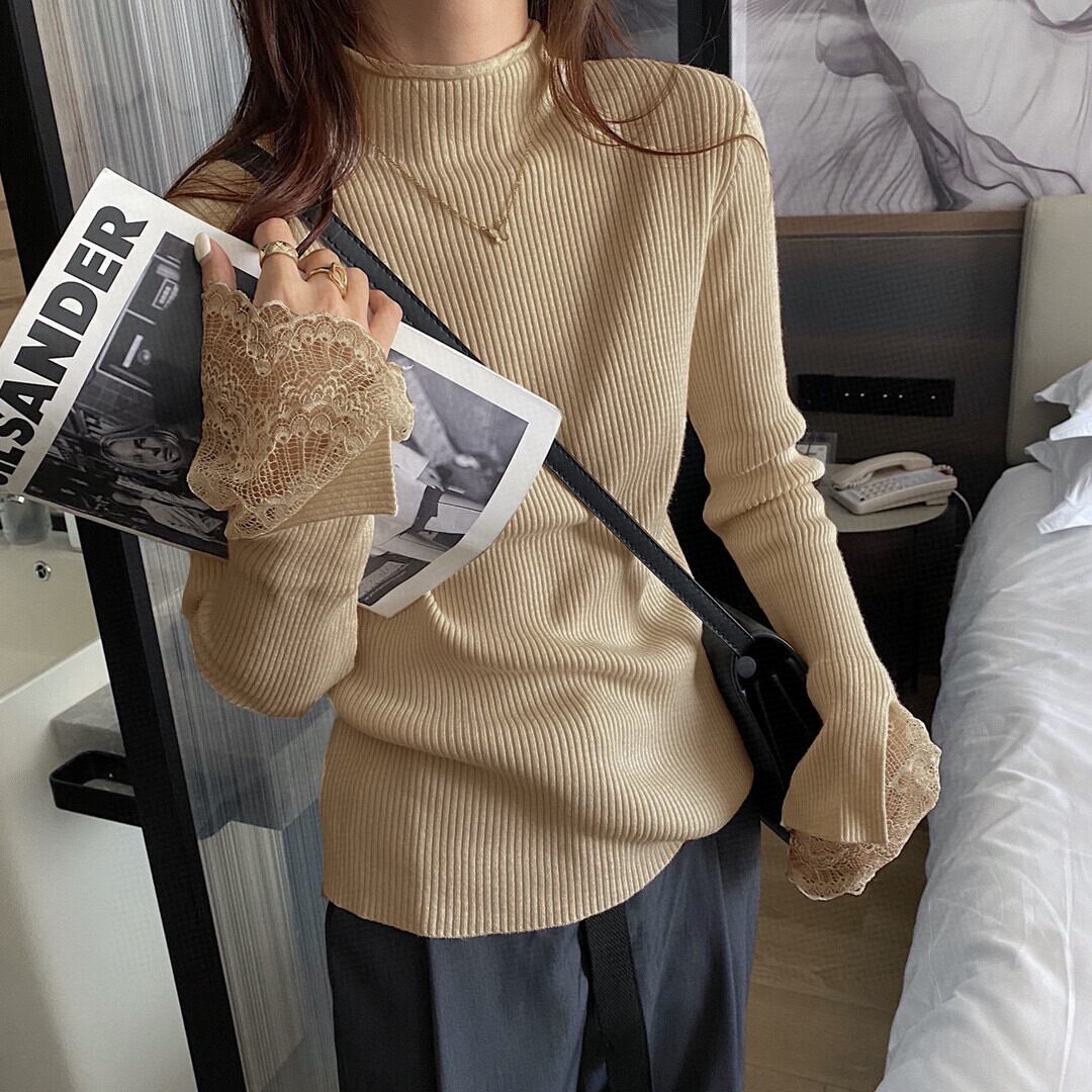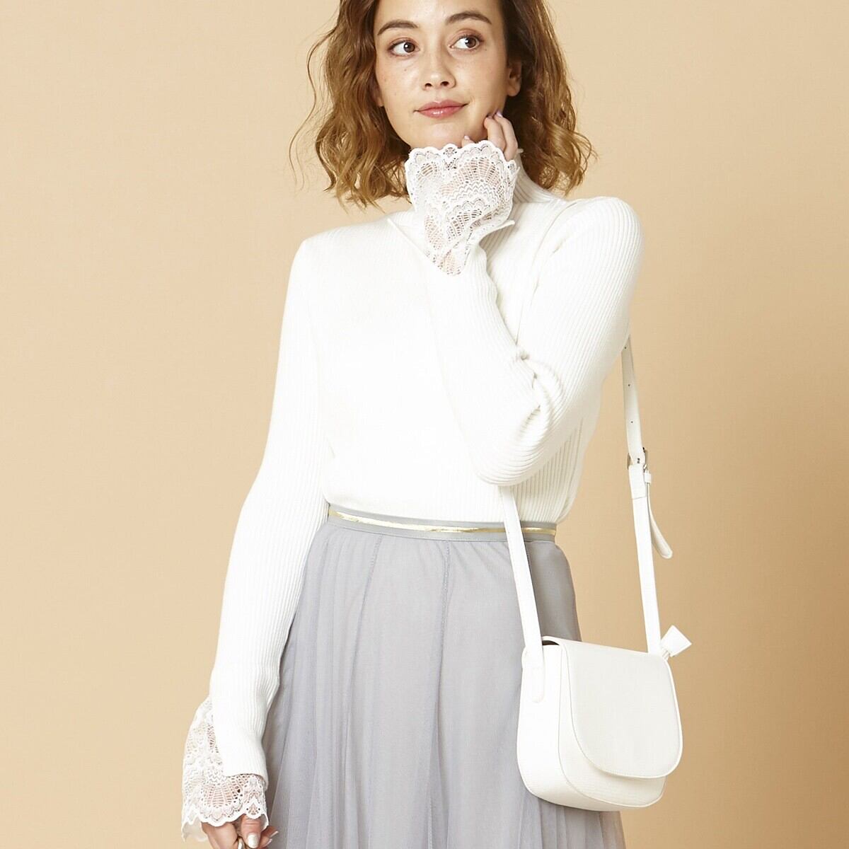 【privatebeach レースデザインスリーブ タートルネックニットトップス】