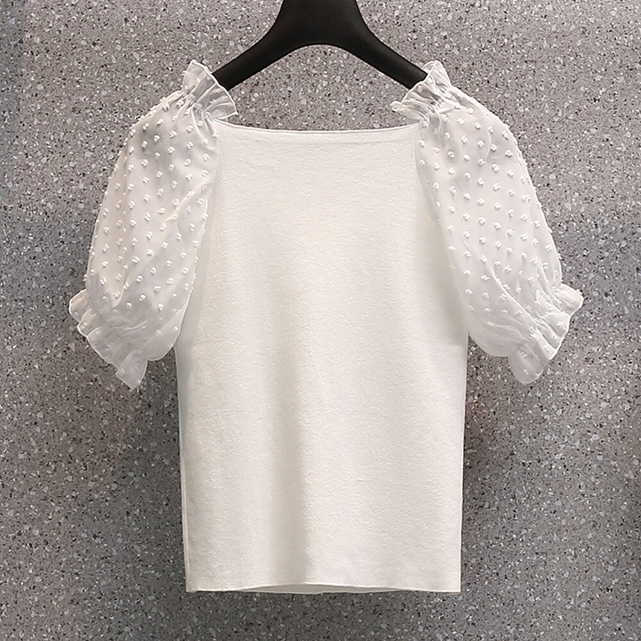シアー袖 トップス Vネックニットソー 韓国風 ブラウス