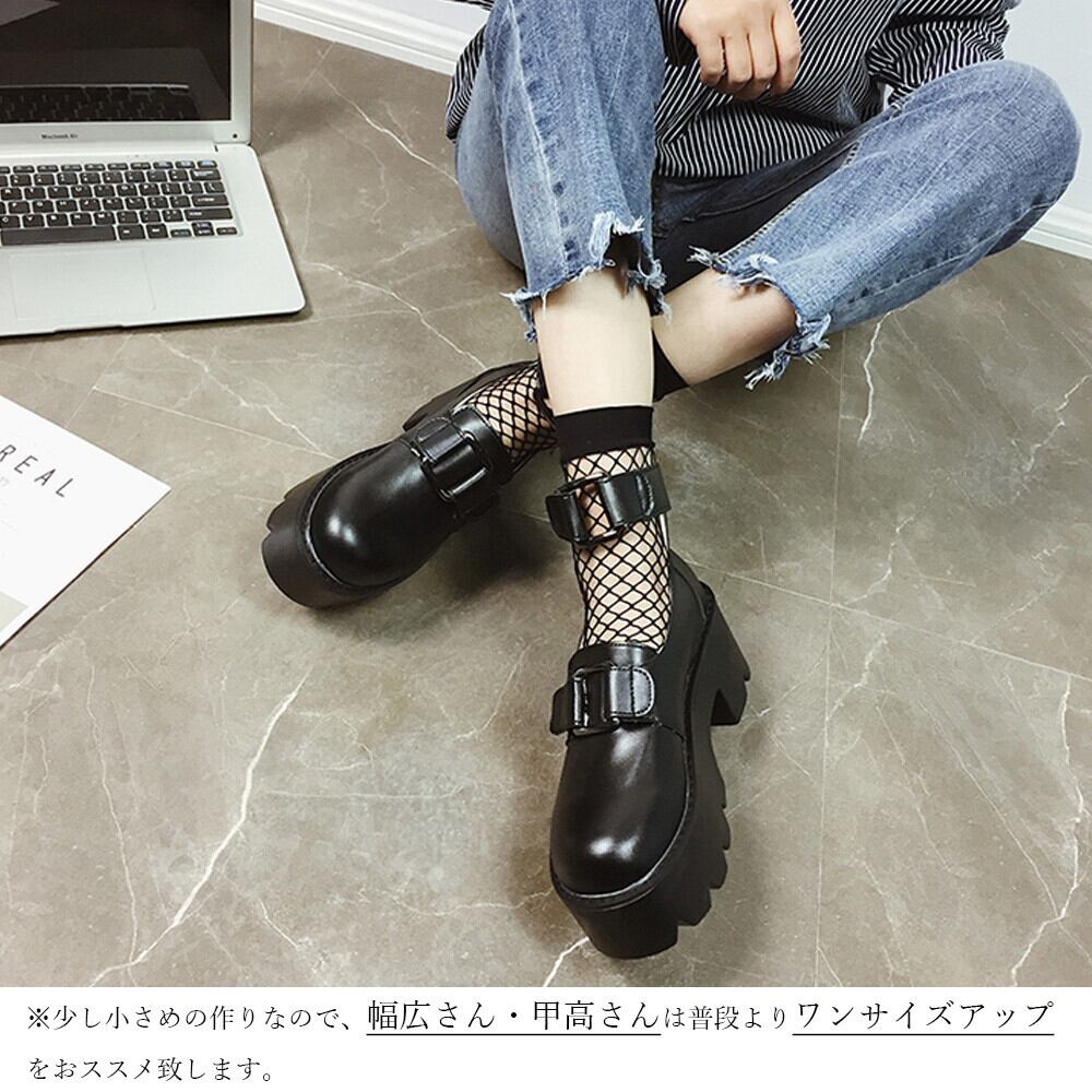 韓国 ラウンドトゥ おでこ靴 大人 厚底シューズ アンクルストラップ メイド 痛くない ゴスロリ 靴 コスプレ お嬢様